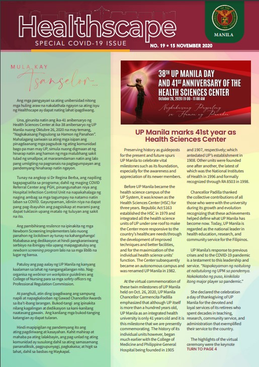 UP Manila Healthscape (Special COVID-19 Issue No. 19, 15 November 2020)