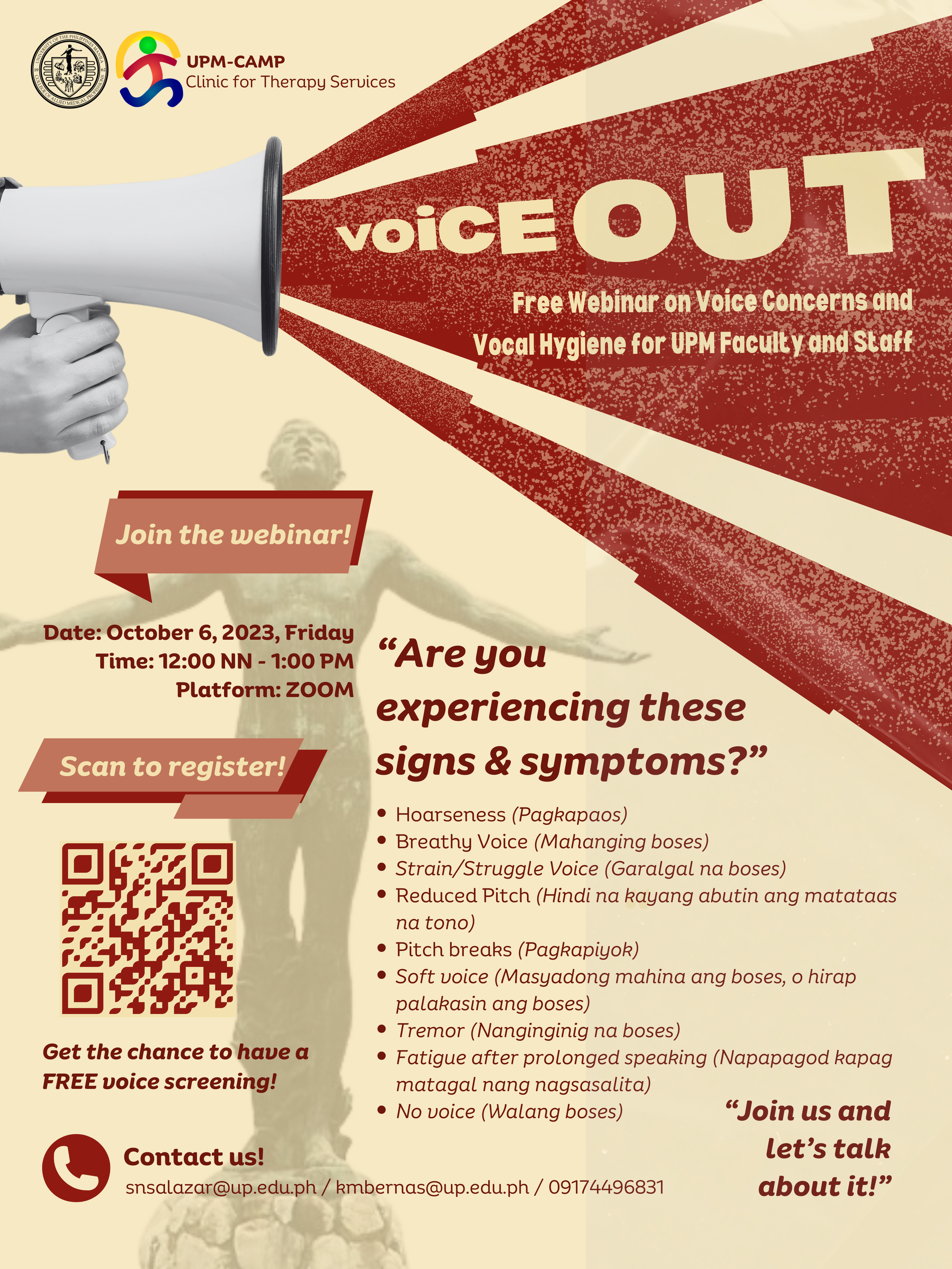 Free webinar on voice concerns and vocal hygiene for UPM faculty and staff