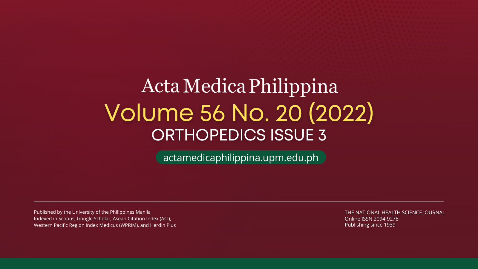 Acta Medica Philippina (Vol. 56 No. 20 2022) ORTHOPEDICS Issue 3