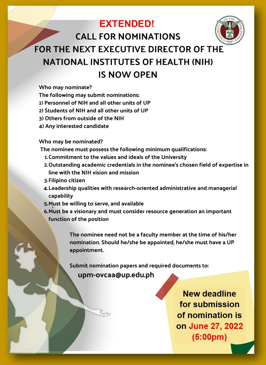 Extended Call for Nominations for the Next Executive Director of the NIH