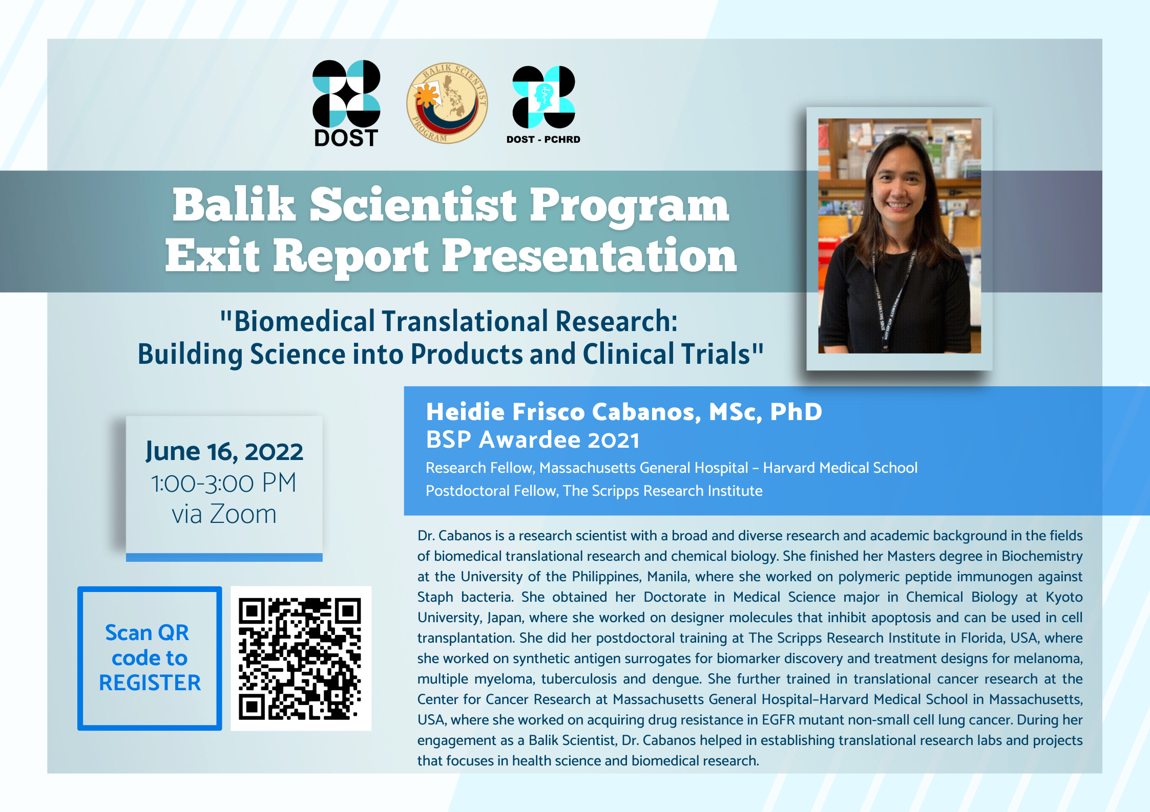 EVENT | “Exit Report Presentation of Balik Scientist Dr. Heidi Frisco Cabanos”