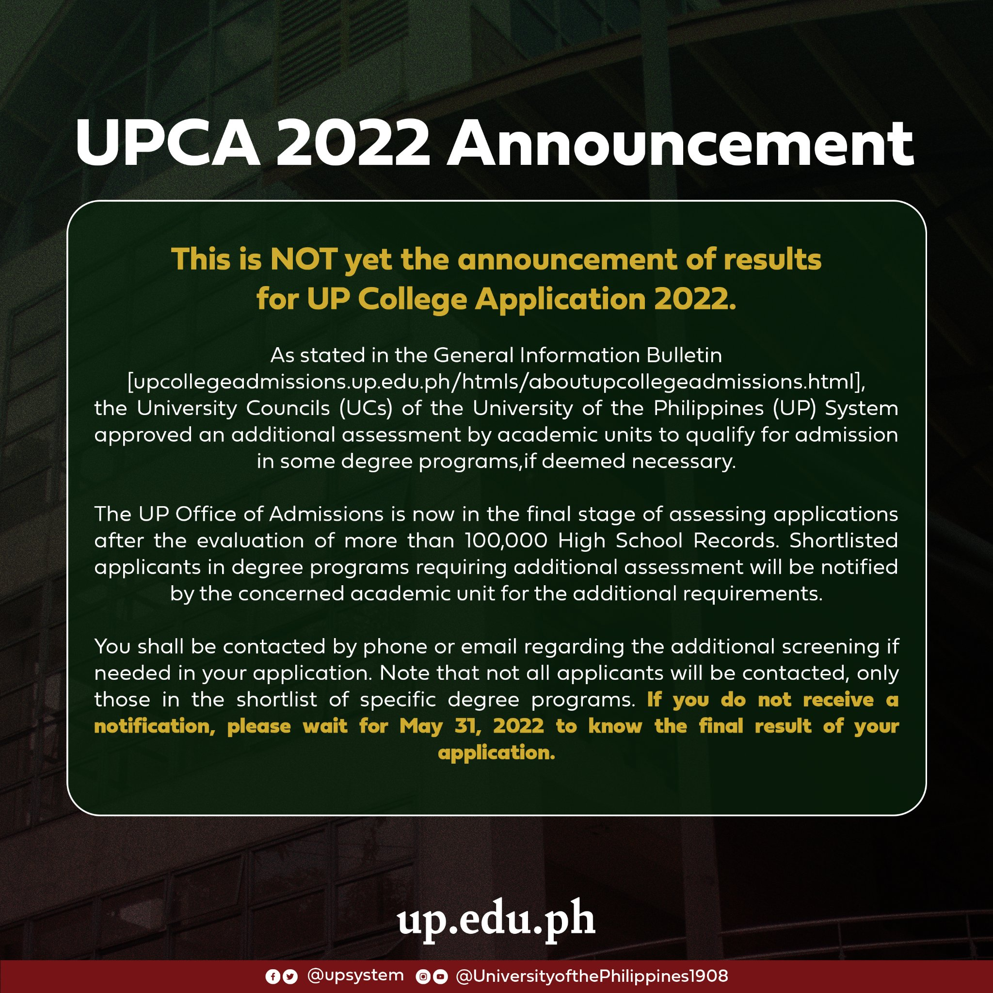 UP System | Announcement of the Office of Admissions on UPCA 2022