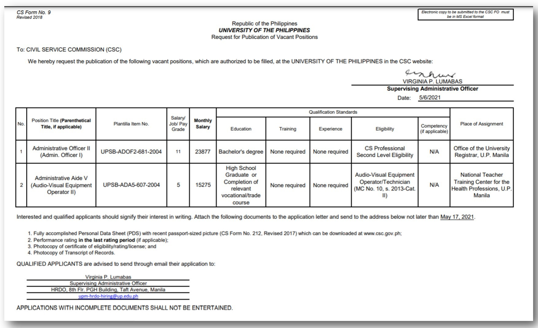 HRDO | Job Vacancies at UPM (as of 6 May 2021)