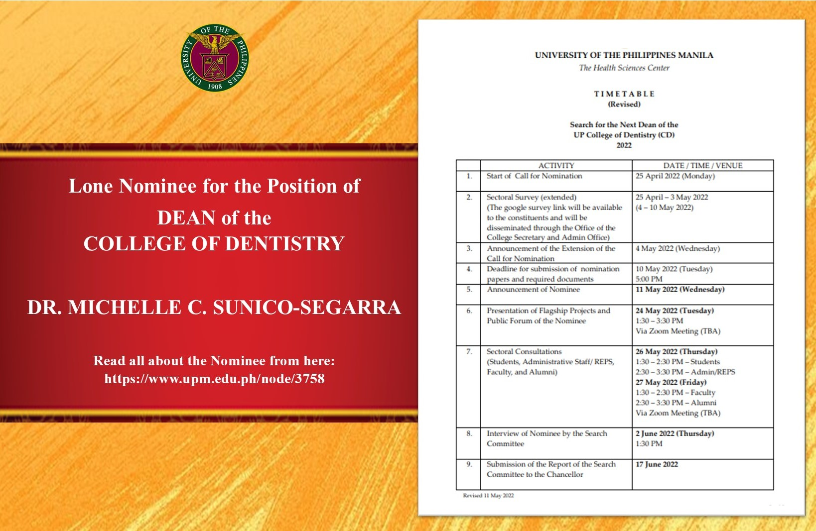 Lone Nominee for the Position of DEAN of the COLLEGE OF DENTISTRY