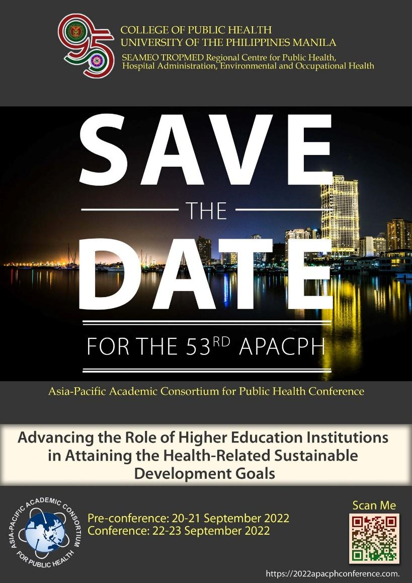 CPH | [Invitation] 53rd APAPCH International Conference: “Advancing the Role of Higher Education Institutions in Attaining the Health-Related Sustainable Development Goals”