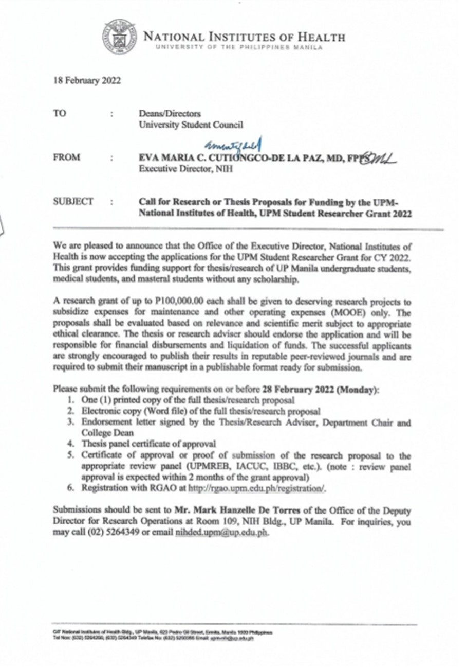 NIH: Call for Proposals for NIH Student Researcher Grant 2022