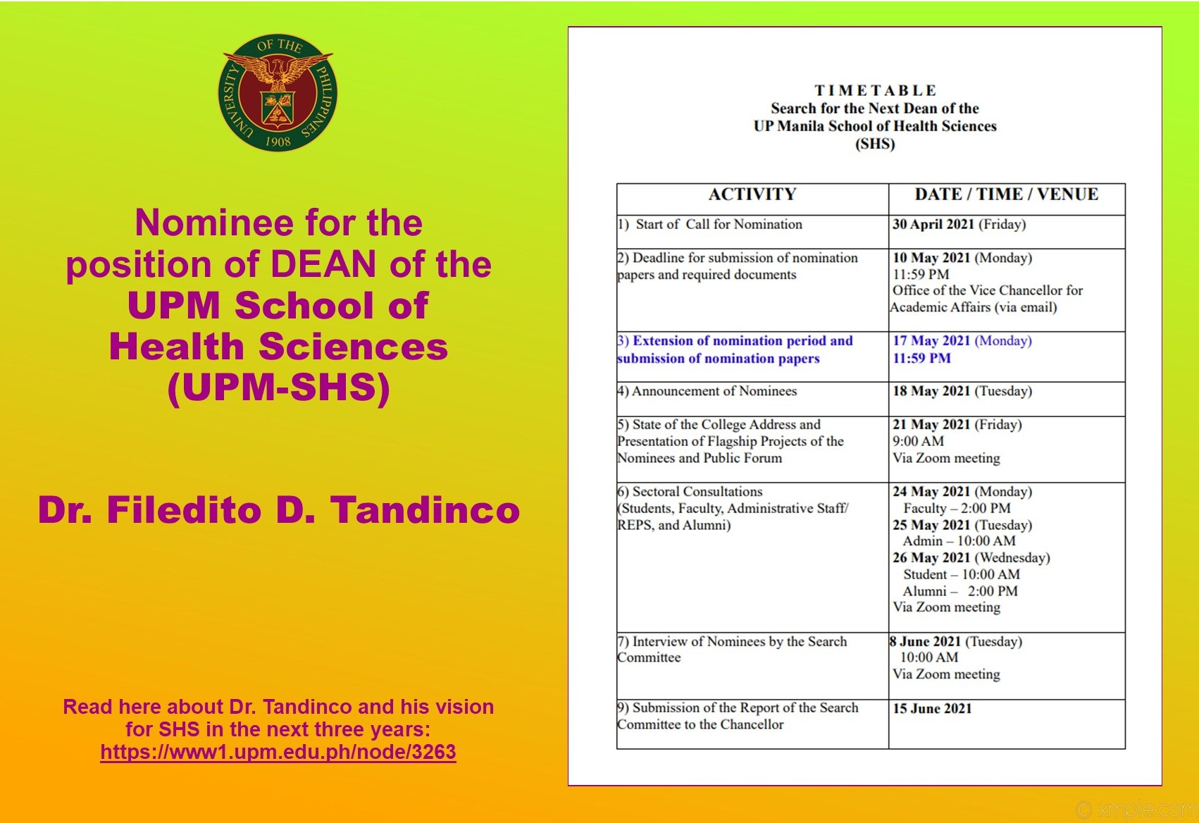 [UPDATE] Dr. Filedito D. Tandinco — Nominee for the position of Dean of the the UPM School of Health Sciences