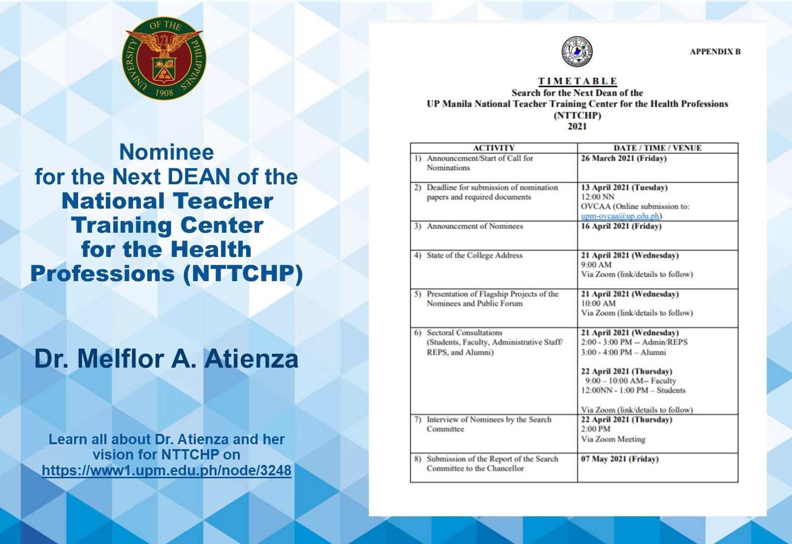 [UPDATE] Dr. Melflor A. Atienza — Nominee for the next DEAN of the National Teacher Training Center for the Health Professions (NTTCHP)