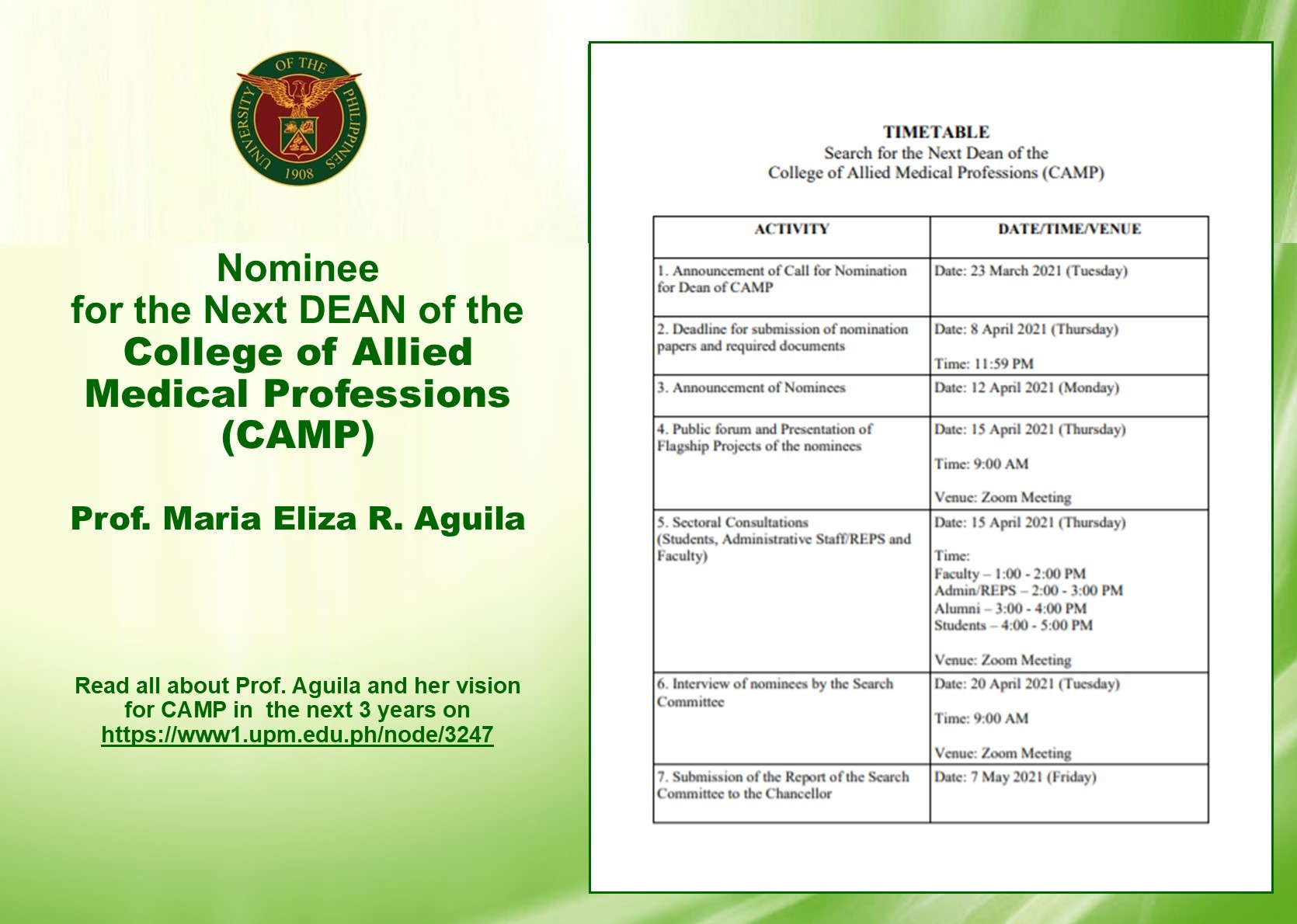[UPDATE] Prof. Maria Eliza R. Aguila — Nominee for the next DEAN of the College of Allied Medical Professions (CAMP)