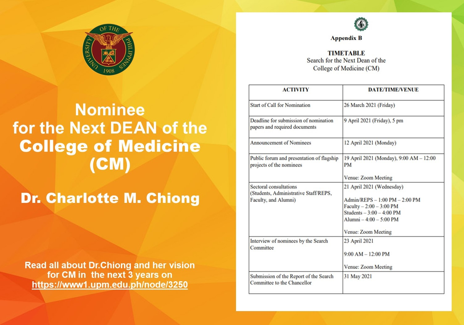 [UPDATE] Dr. Charlotte M. Chiong — Nominee for the Next DEAN of the College of Medicine (CM)
