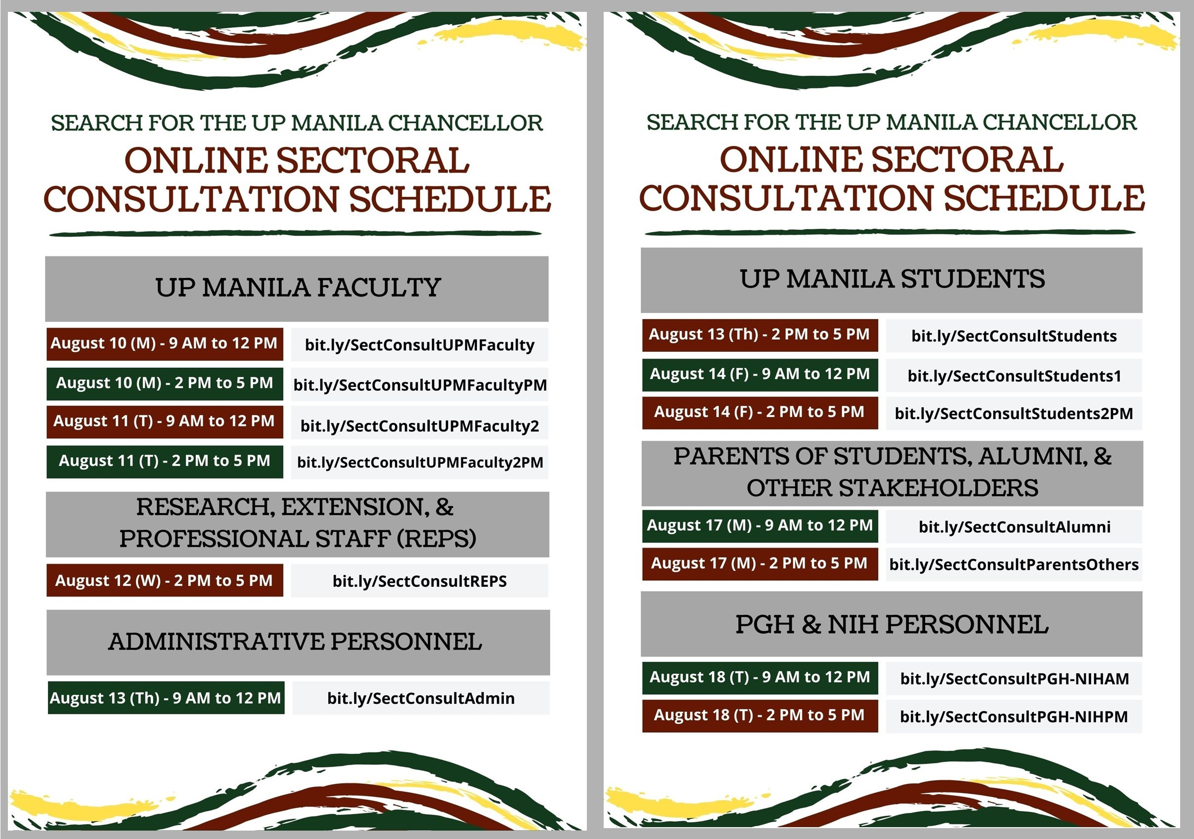 Search for the next UP Manila Chancellor: [Updated] ONLINE SECTORAL CONSULTATIONS