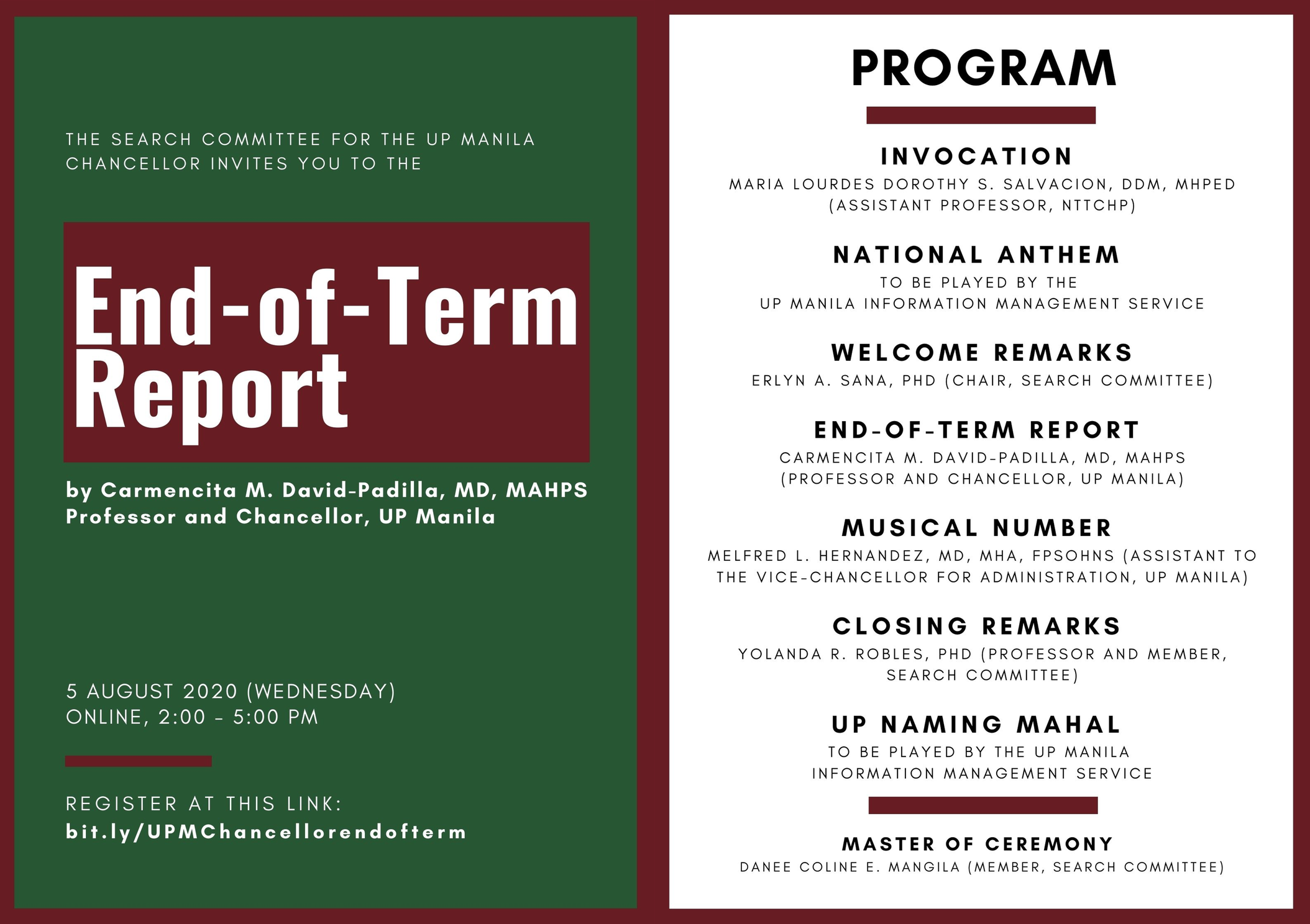 [EVENT] End-Of-Term Report of Chancellor Carmencita Padilla (2017-2020)