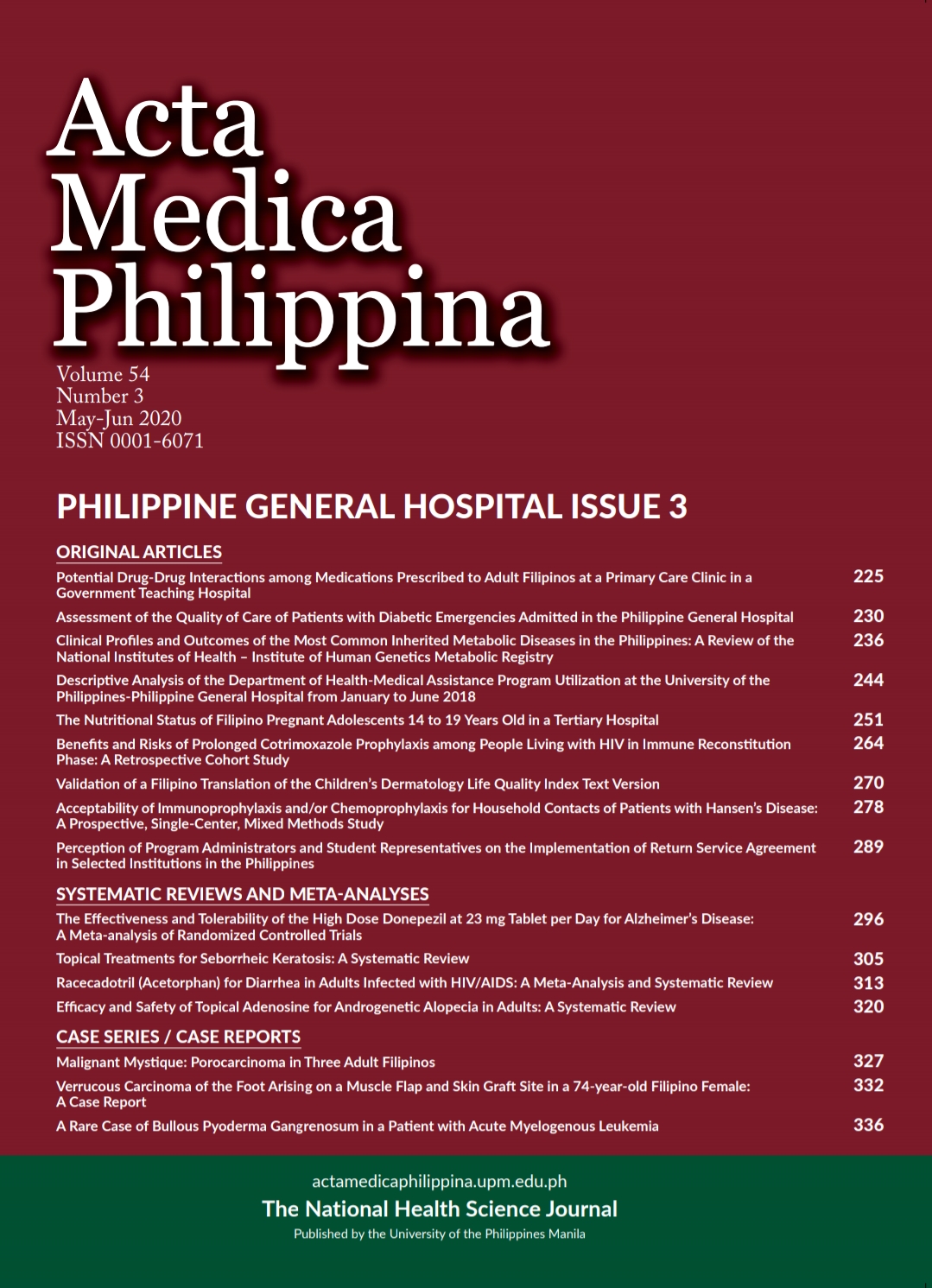 Acta Medica Philippina | Philippine General Hospital 3 (Vol. 54 No. 3 2020)