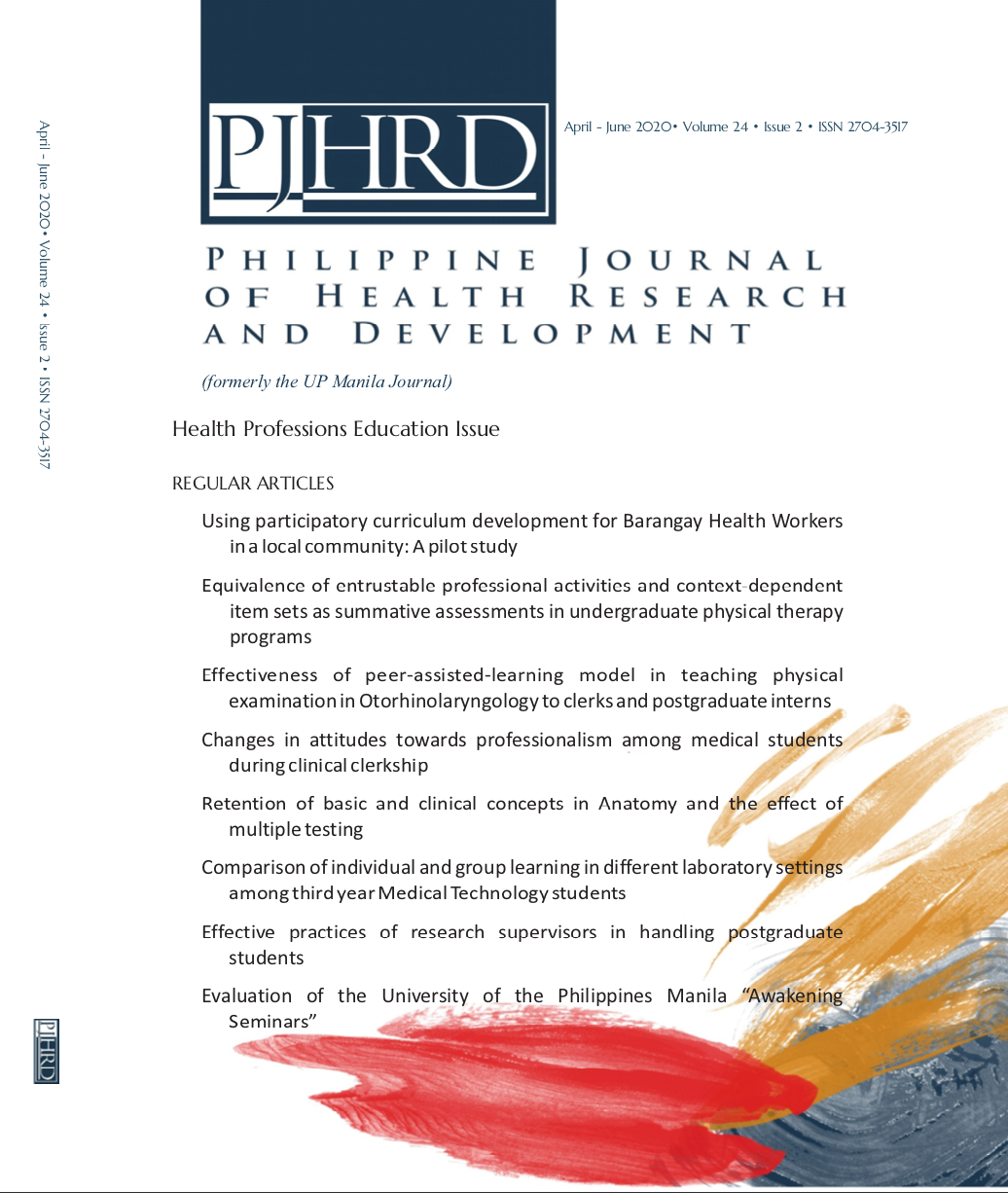 Philippine Journal of Health Research and Development (PJHRD) 2nd Quarter 2020 (Health Professions Education Issue)