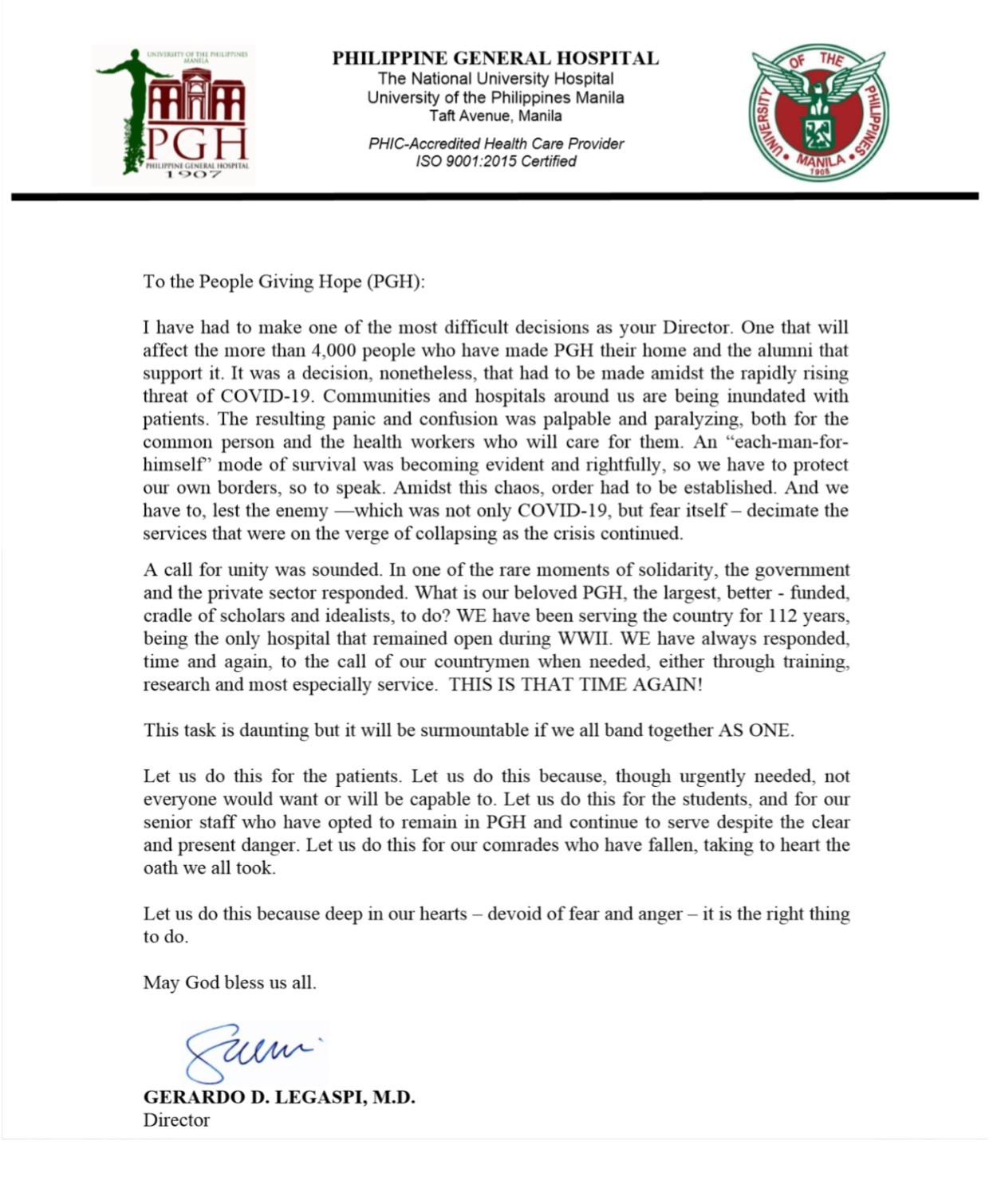 Message from the PGH Director: “A Letter to the People Giving Hope” (25 March 2020)