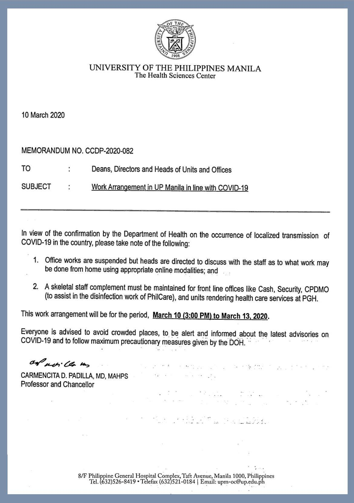 CCDP-2020-082: “Work Arrangement in UP Manila in line with COVID-19”