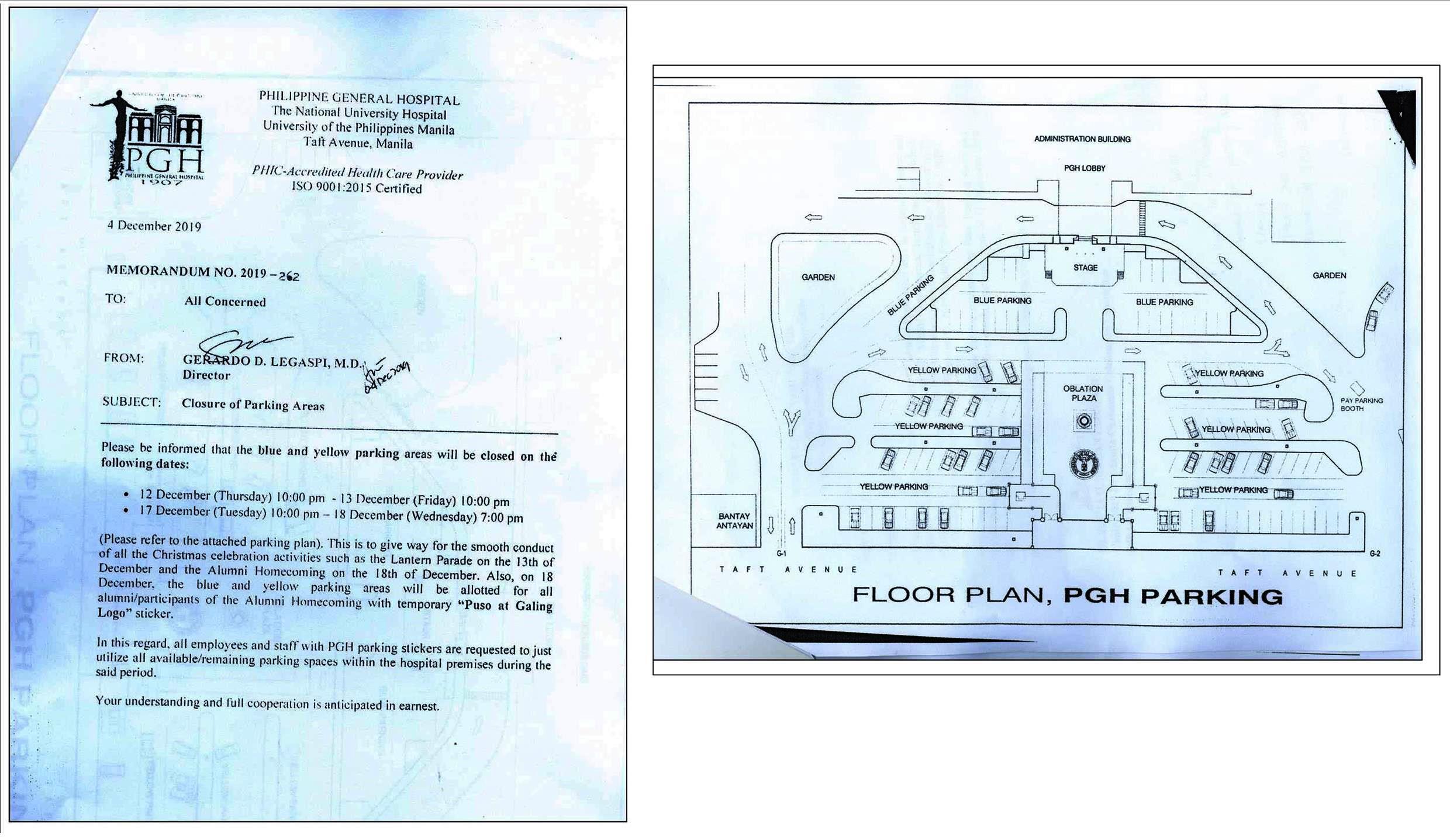 UPDATES: Closure of PGH Parking Areas for some Christmas Events (as of 11 Dec. 2019)