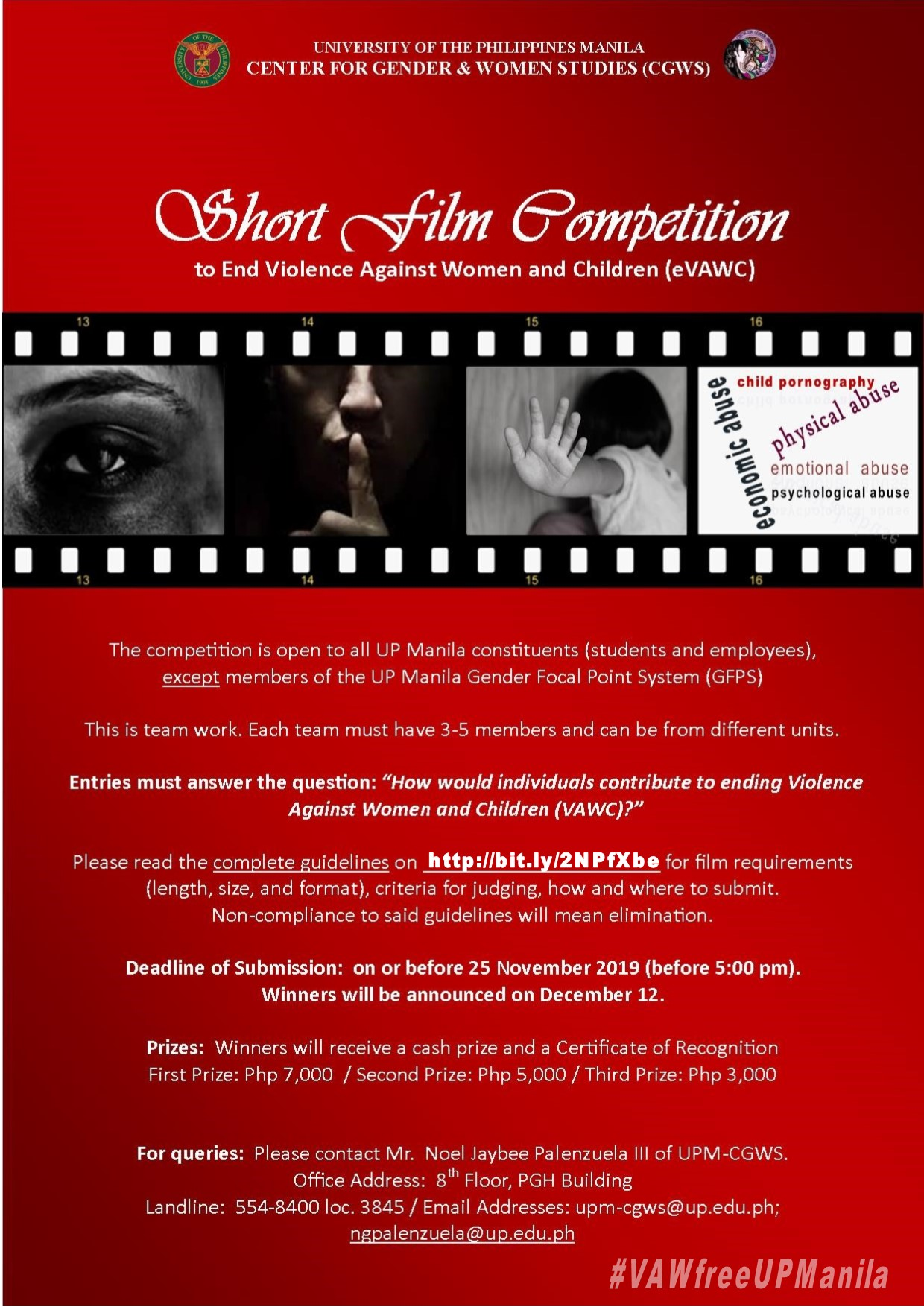 UPM-CGWS: Short Film Competition — to End Violence Against Women and Children (eVAWC) [UPDATE: New Deadline: 06 Dec. 2019]