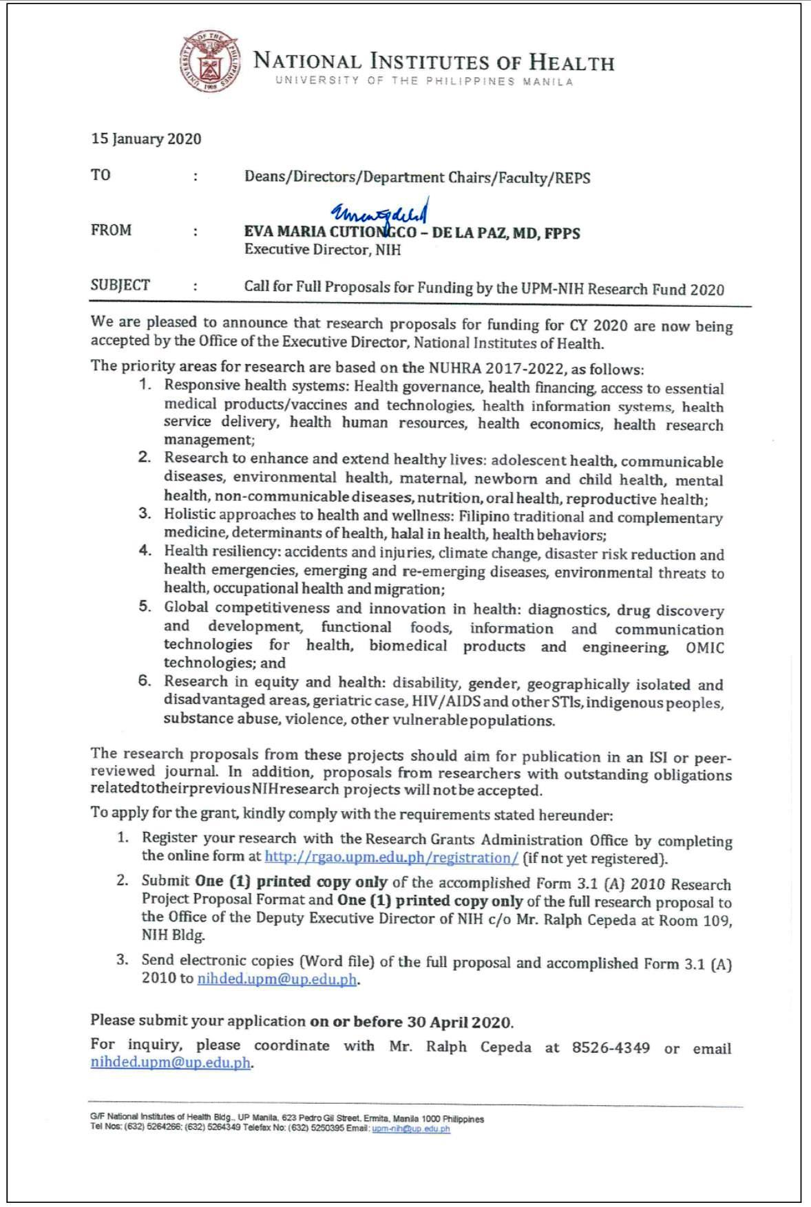 OVCR: Call for Research Proposals for 2020 UPCWGS Research Grant
