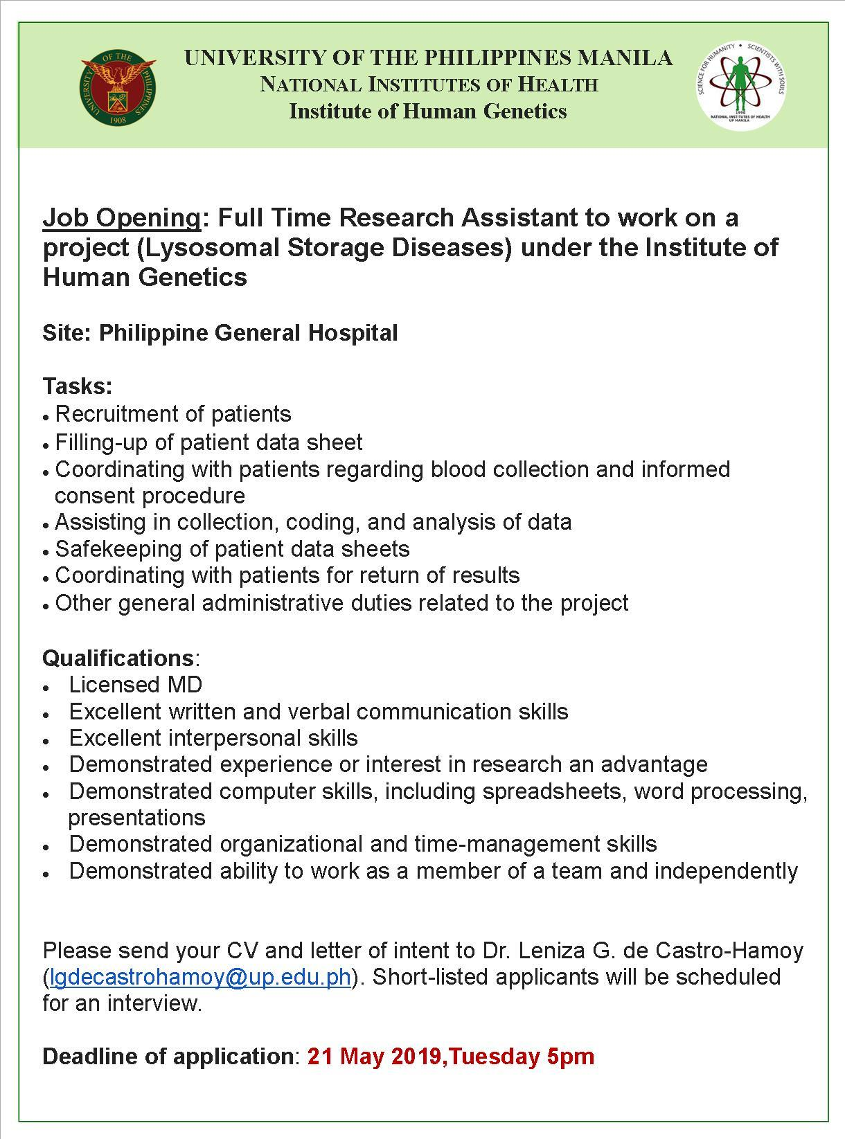 IHG-NIH: Job Opening for Full-time Research Assistant