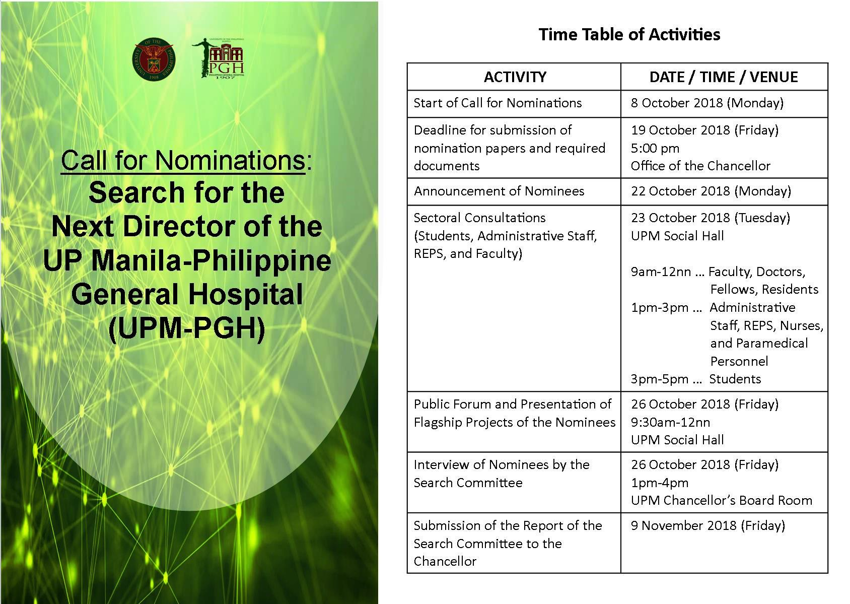 Call for Nominations: Search for the Next Director of the UP Manila-Philippine General Hospital (UPM-PGH)