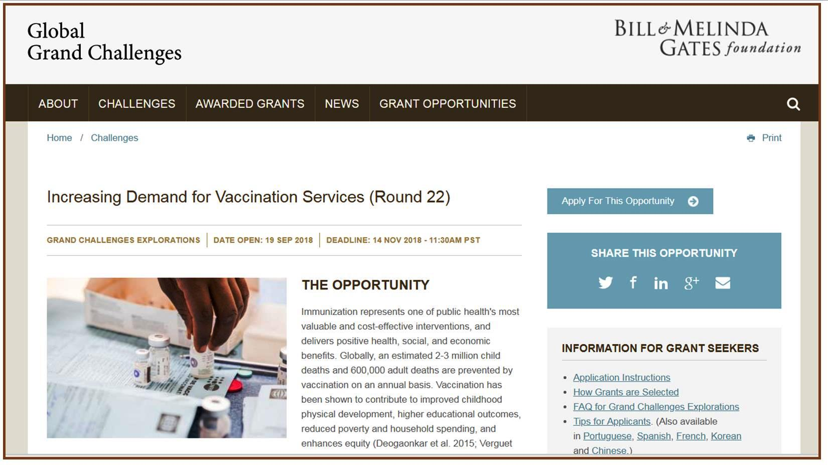 Call for Proposals: “Global Grand Challenges: Increasing the Demand for Vaccination Services (Round 22)”