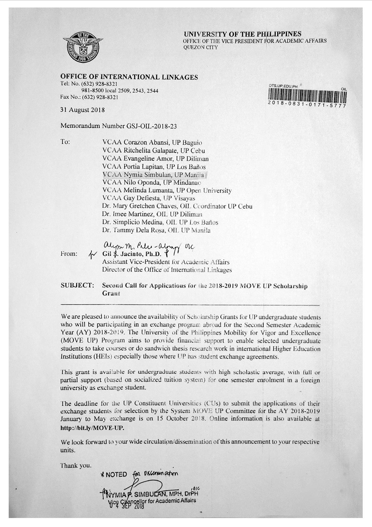 2nd Call for Applications — MOVE-UP Scholarship Grant 2018-19
