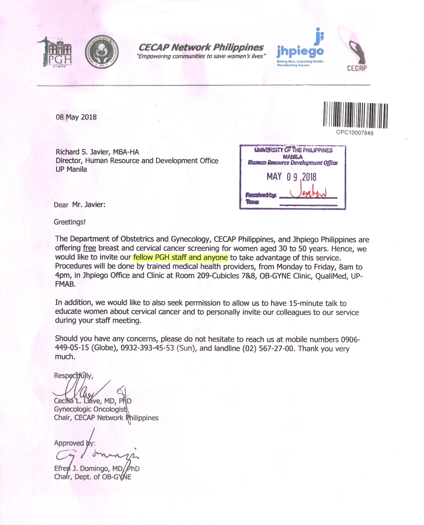 Free breast, cervical cancer screen test for UP-PGH women, 30-50 years old