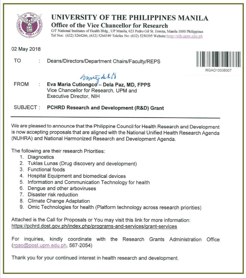 CALL FOR PROPOSALS: PCHRD Research and Development (R&D) Grant