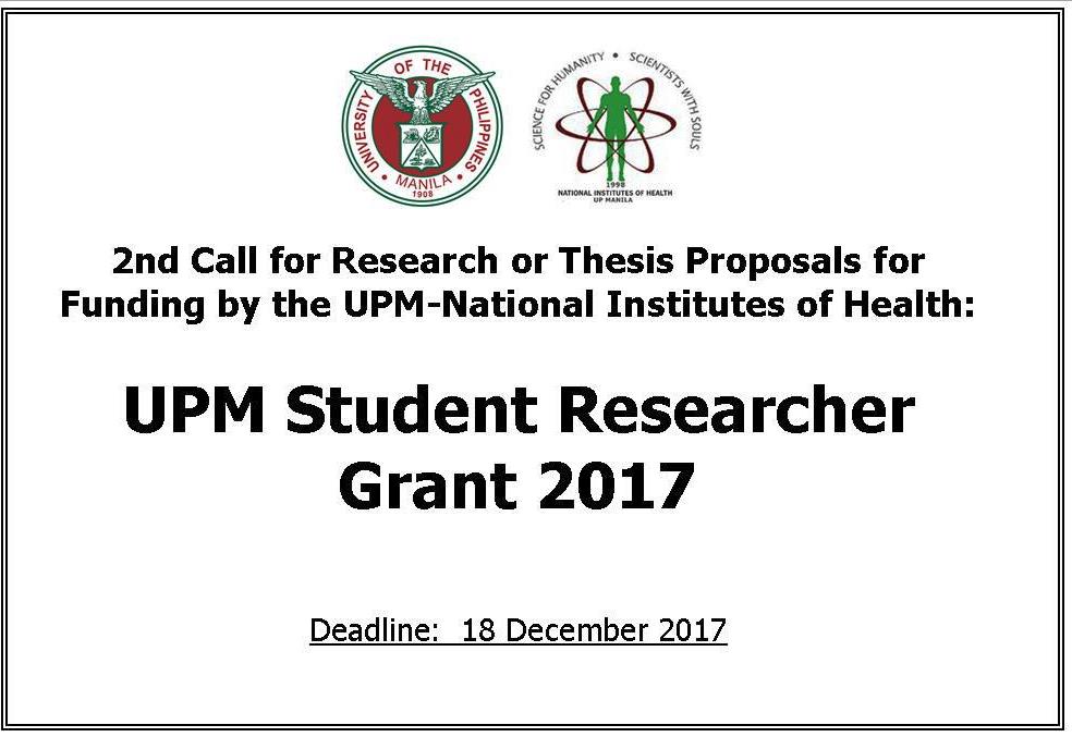 UPM-NIH: “2nd Call for Research or Thesis Proposals for UPM Student Researcher Grant 2017”