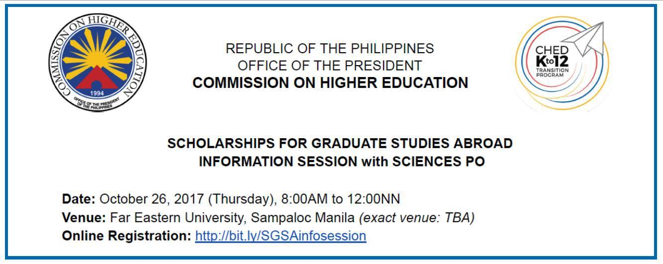 CHED: “Sciences Po – CHED Scholarship Program for September 2018 Intake”
