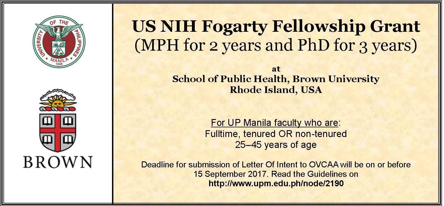 Brown University: US NIH Fogarty Fellowship Grant for UPM faculty