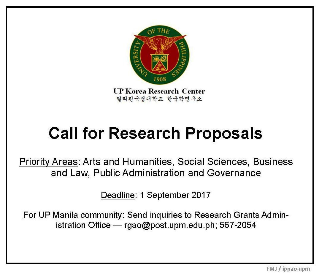 UP Korea Research Center: Call for Proposals (Deadline: 1 Sept. 2017)