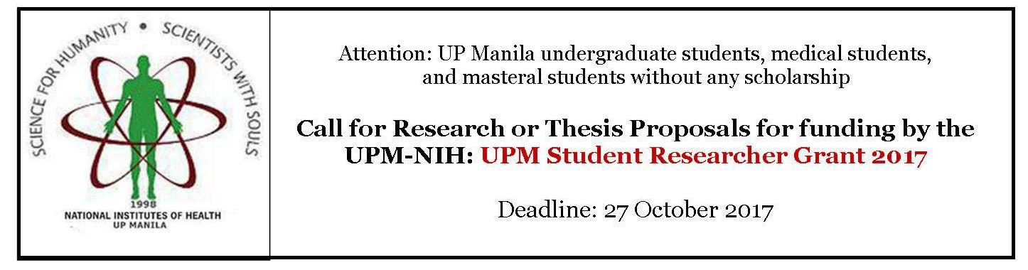 NIH: “Call for Research or Thesis Proposal for Funding by the UPM-NIH Student Researcher Grant 2017”
