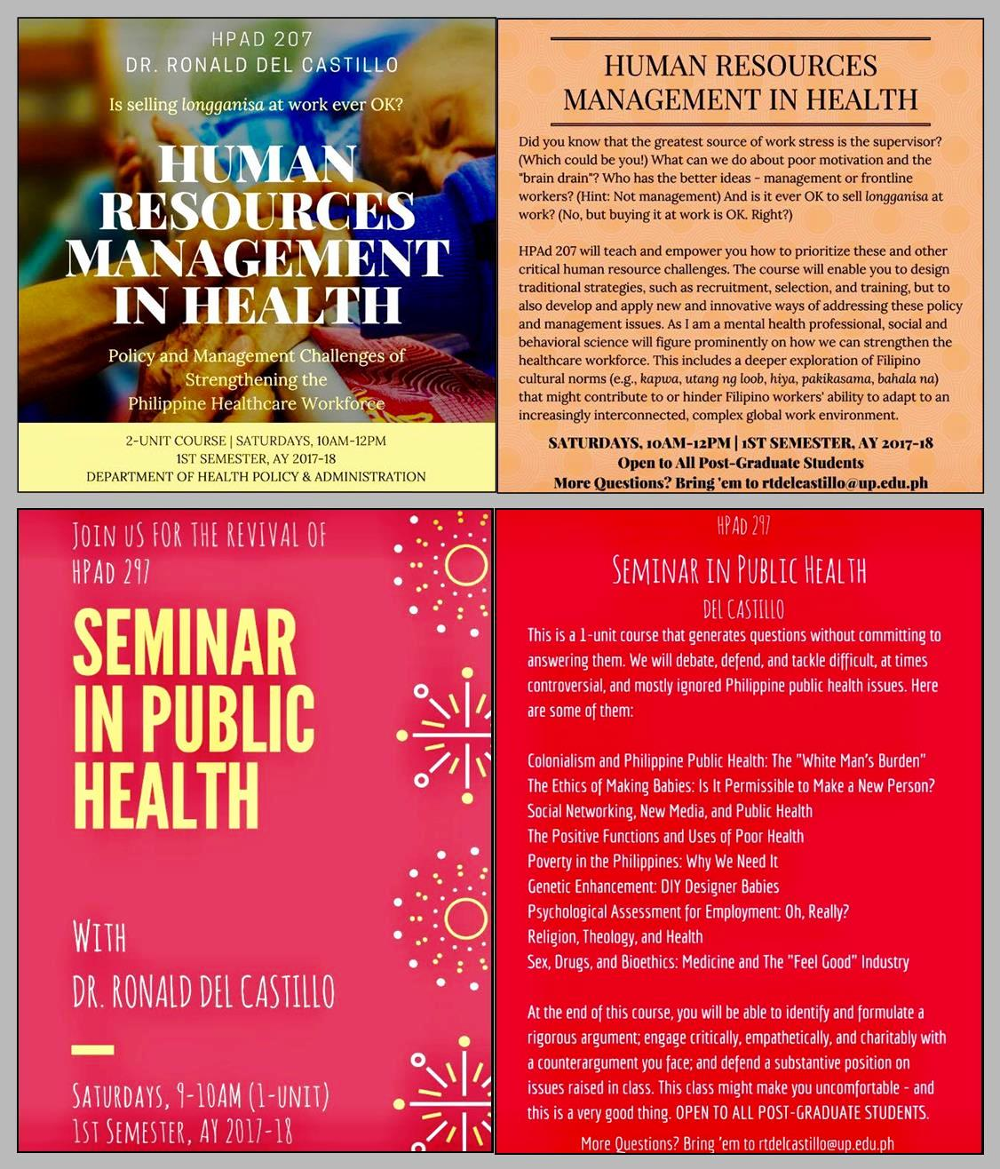 CPH Graduate Courses (for 1st Semester, AY 2017-2018)