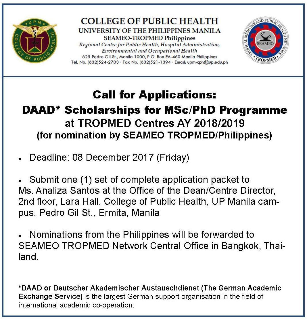 Call for Applications: DAAD Scholarships for MSc/PhD Programme at TROPMED Centres AY 2018/2019
