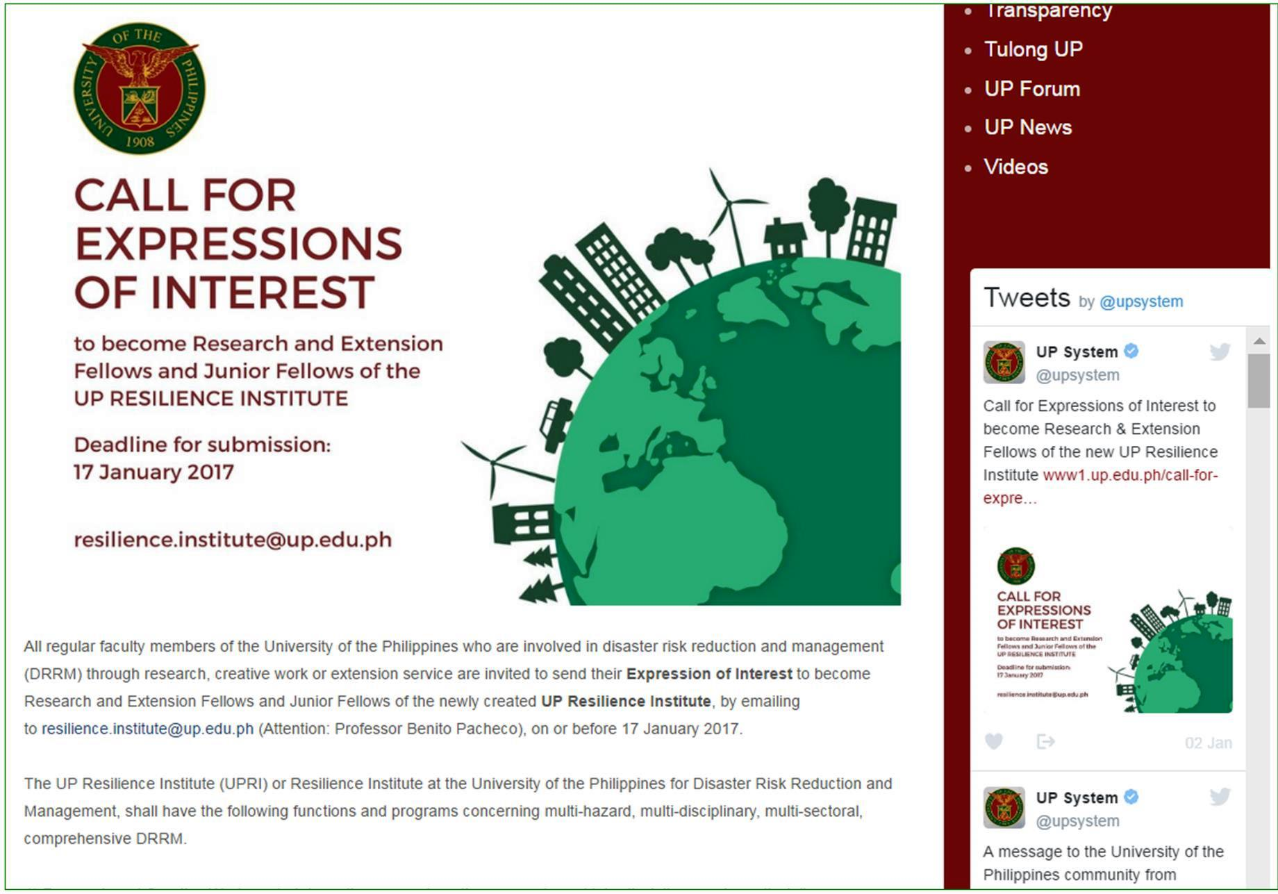 PAEP 16-67: “Invitation to become Research & Extension Fellows of the new UP Resilience Institute”