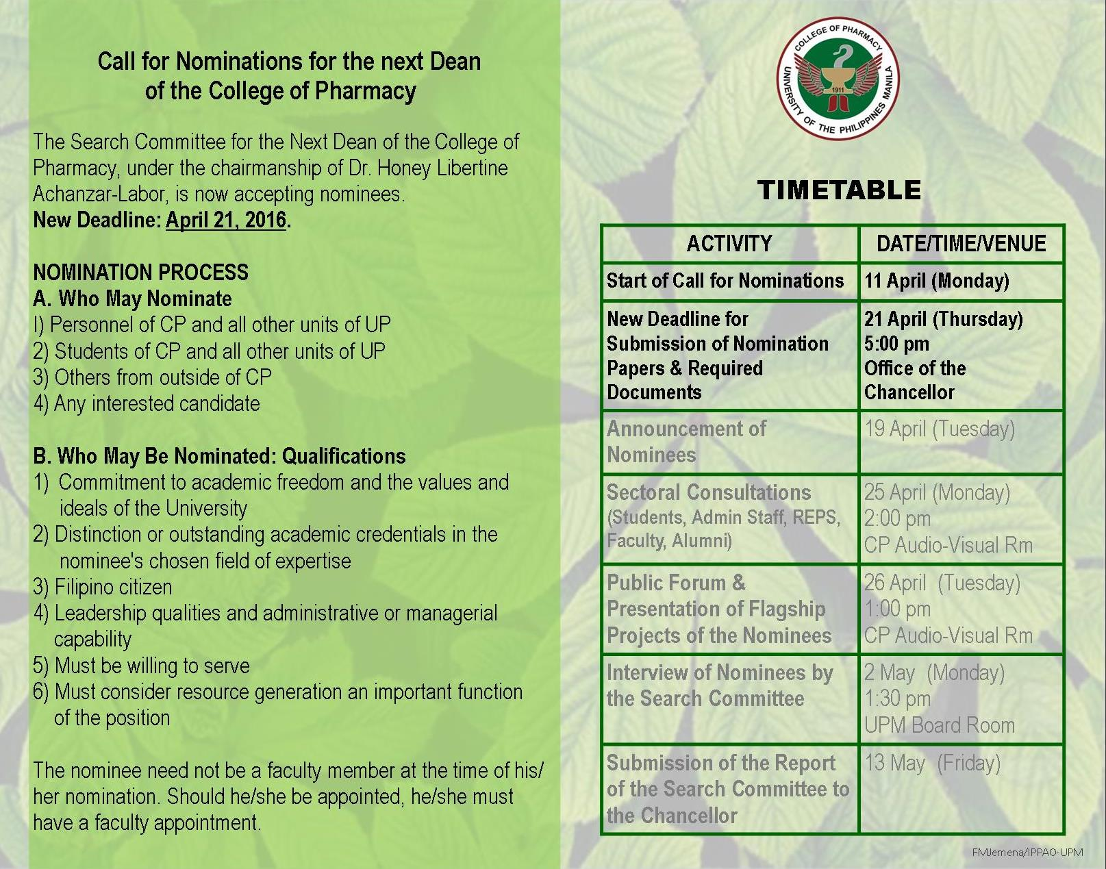 UPDATE: CV, Flagship Projects of Nominee for Deanship of the College of Pharmacy