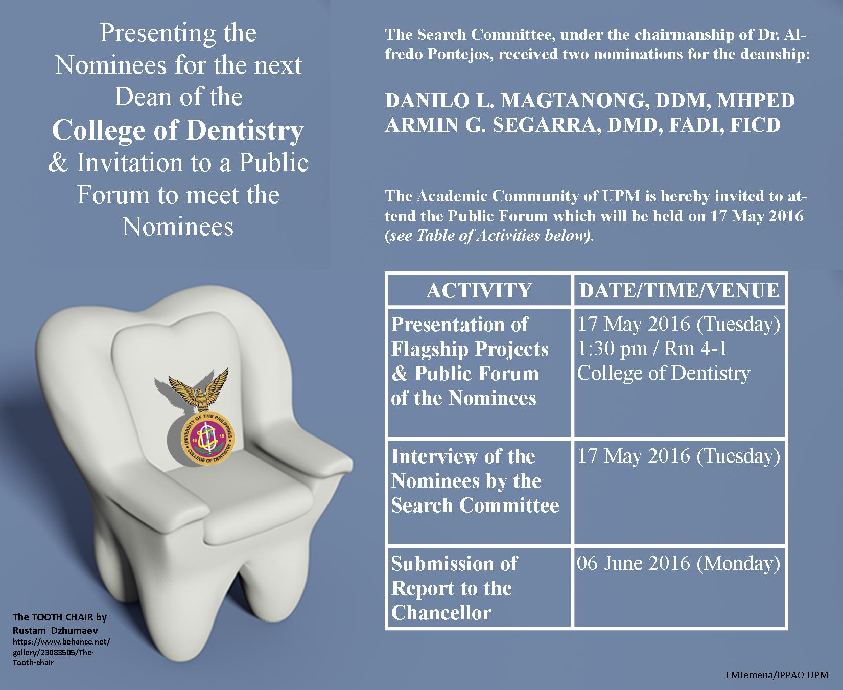 UPDATE: Nominees for the deanship of the College of Dentistry (with CVs + Flagship Projects)