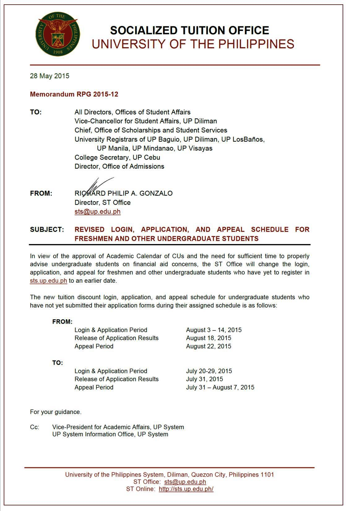 STS News: New sked for Log-in, Application, and Appeal Period for Upperclassmen