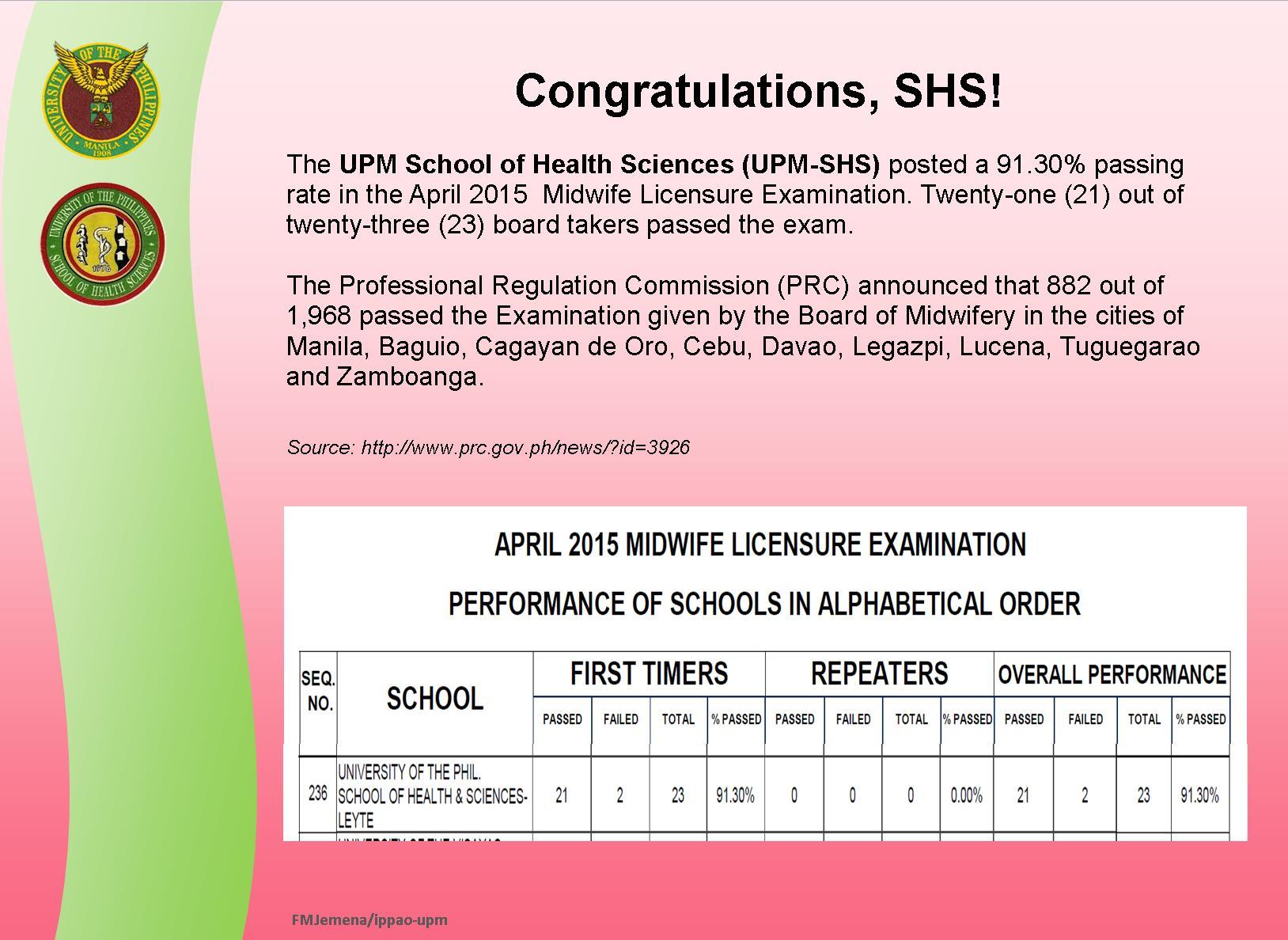 21 UPM-SHS Midwifery grads pass April 2015 exam