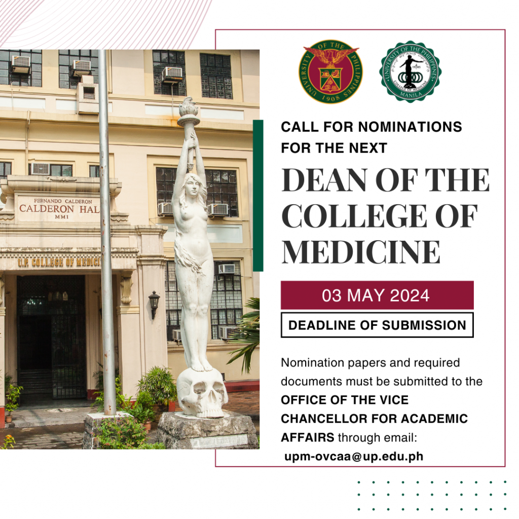 The Search Committee for the next Dean of the UP College of Medicine is now actively conducting the search for qualified nominees to the position of the next Dean.