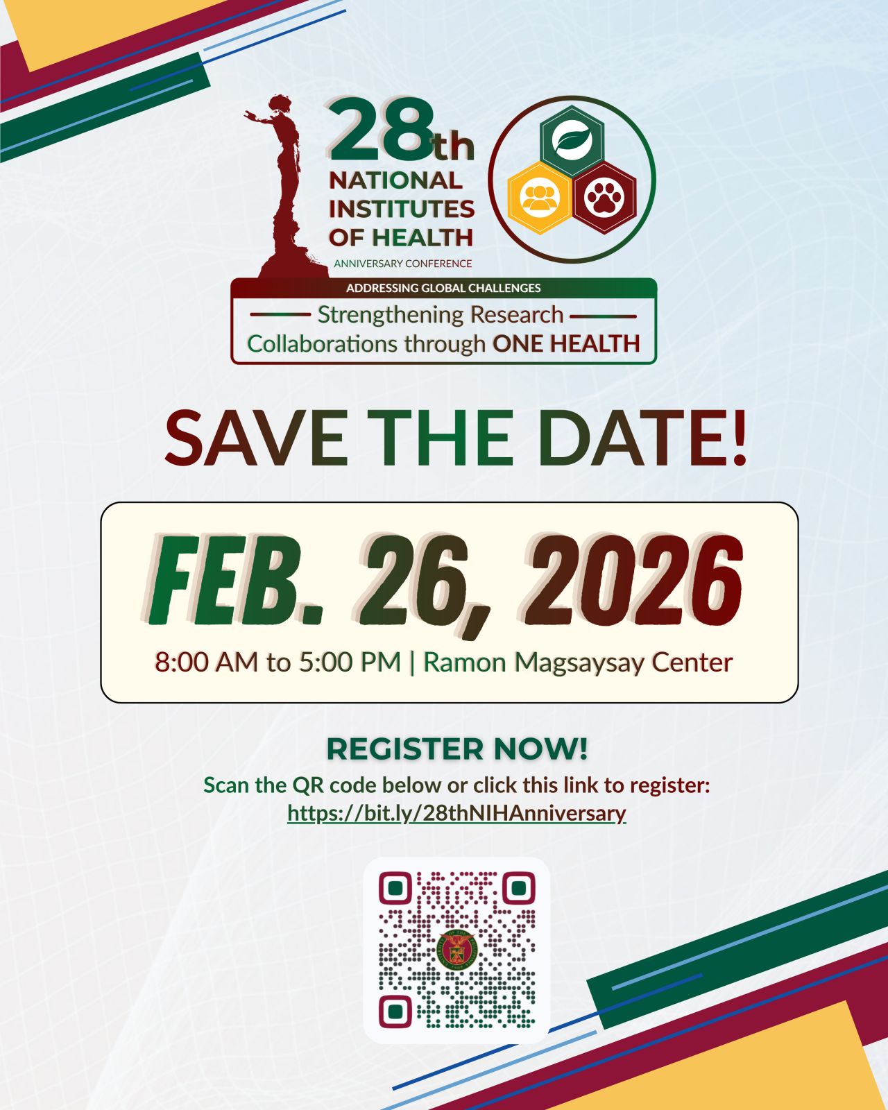 The National Institutes of Health, University of the Philippines Manila, invites you to its 28th Anniversary Conference on February 26, 2026, at the Ramon Magsaysay Center, Manila.