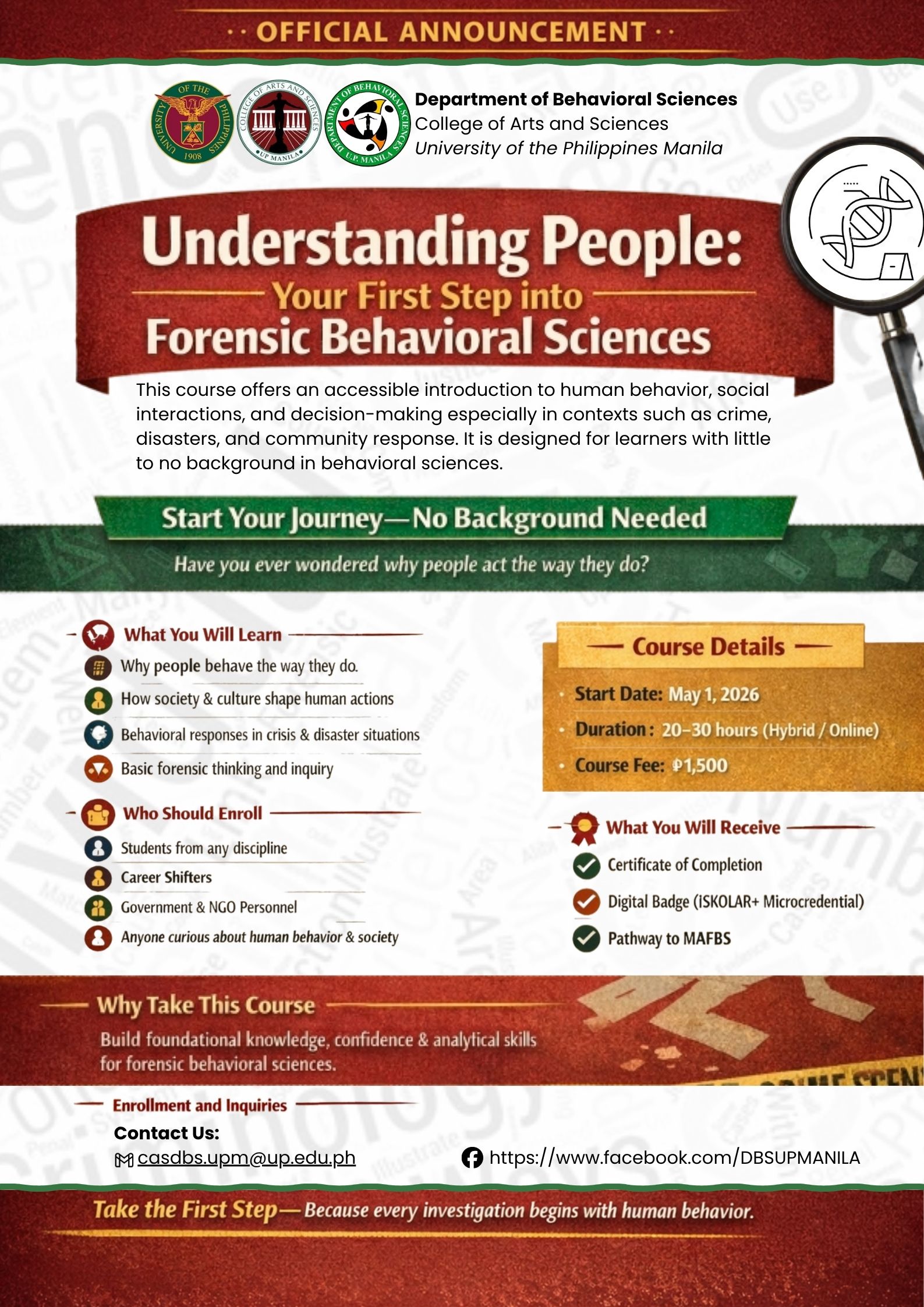 Ever wondered why people behave the way they do? Discover the science behind human behavior, decision-making, and responses in critical situations through a beginner-friendly microcredential course offered by the Department of Behavioral Sciences, UP Manila.