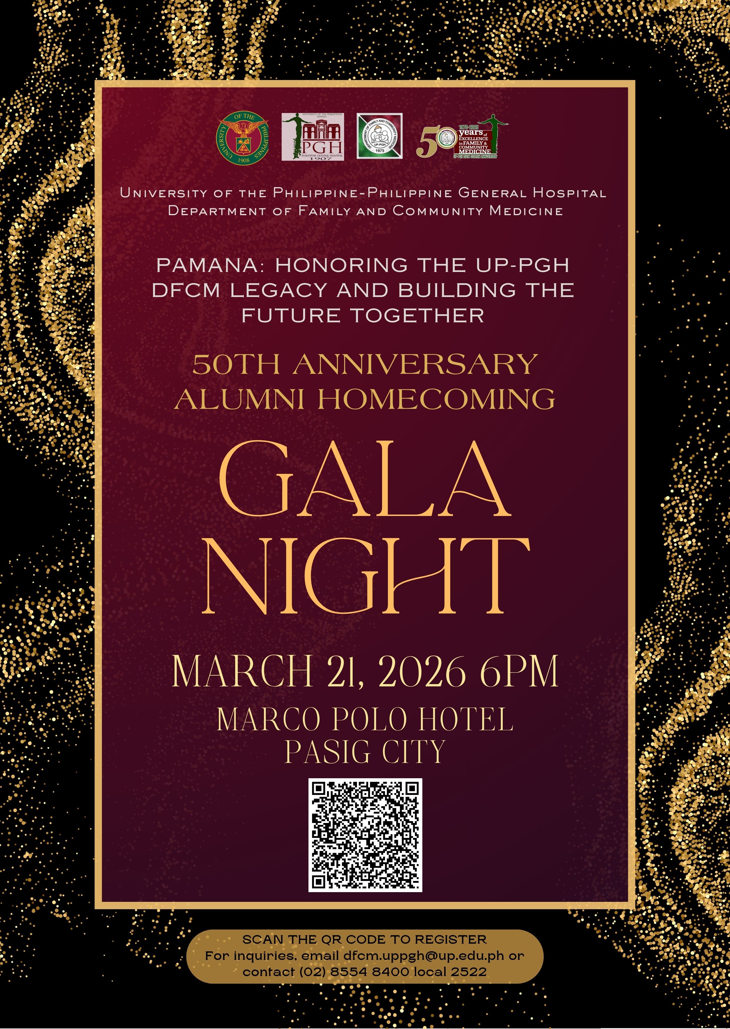 This event is the official Grand Alumni Homecoming Gala Night, organized for DFCM Alumni, Faculty, and UP Manila Officials.