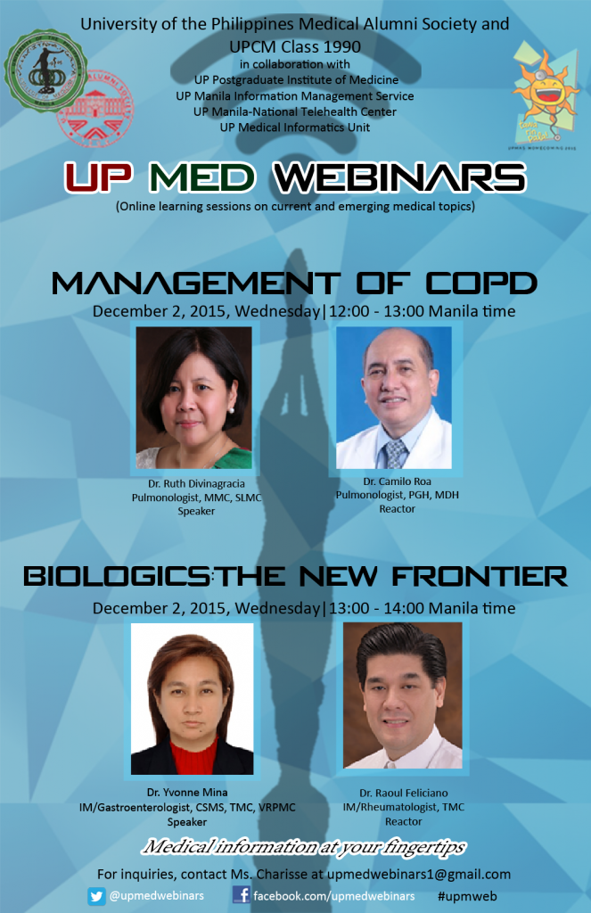 For details, go to www.upm.edu.ph/upmedwebinars, facebook.com/upmedwebinars, twitter.com/upmedwebinars
