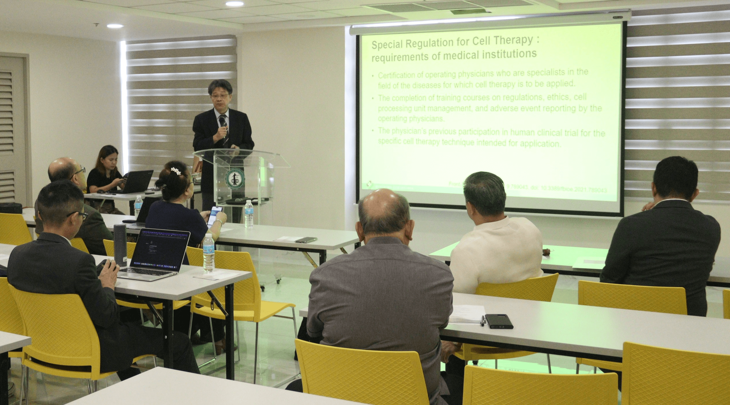 The head of the TMU-Wanfang Hospital delegation, Vice Superintendent Chiang Chen-Yuan, gave a talk on Regenerative Medicines in Taiwan, which rested on a dual-track regulatory framework: the Medical Care Act, or “Regulation Governing the Application of Specific Medical Examination Technique and Medical Device (RASMET)” also known as the “Special Regulation for Cell Therapy,” and the Pharmaceutical Affairs Act or the “Regenerative Medicinal Product Management Act,” which is still under approval process in the Taiwanese parliament. Dr. Chiang delved on the requirements of their medical institutions for the special regulation for cell therapy, such as the certification of operating physicians who are specialists in the field of the diseases for which the cell therapy is to be applied; completion of training courses on regulations, ethics, cell processing unit management, and adverse event reporting by the operating physicians; and previous participation in human clinical trials for the specific cell therapy technique intended for application.