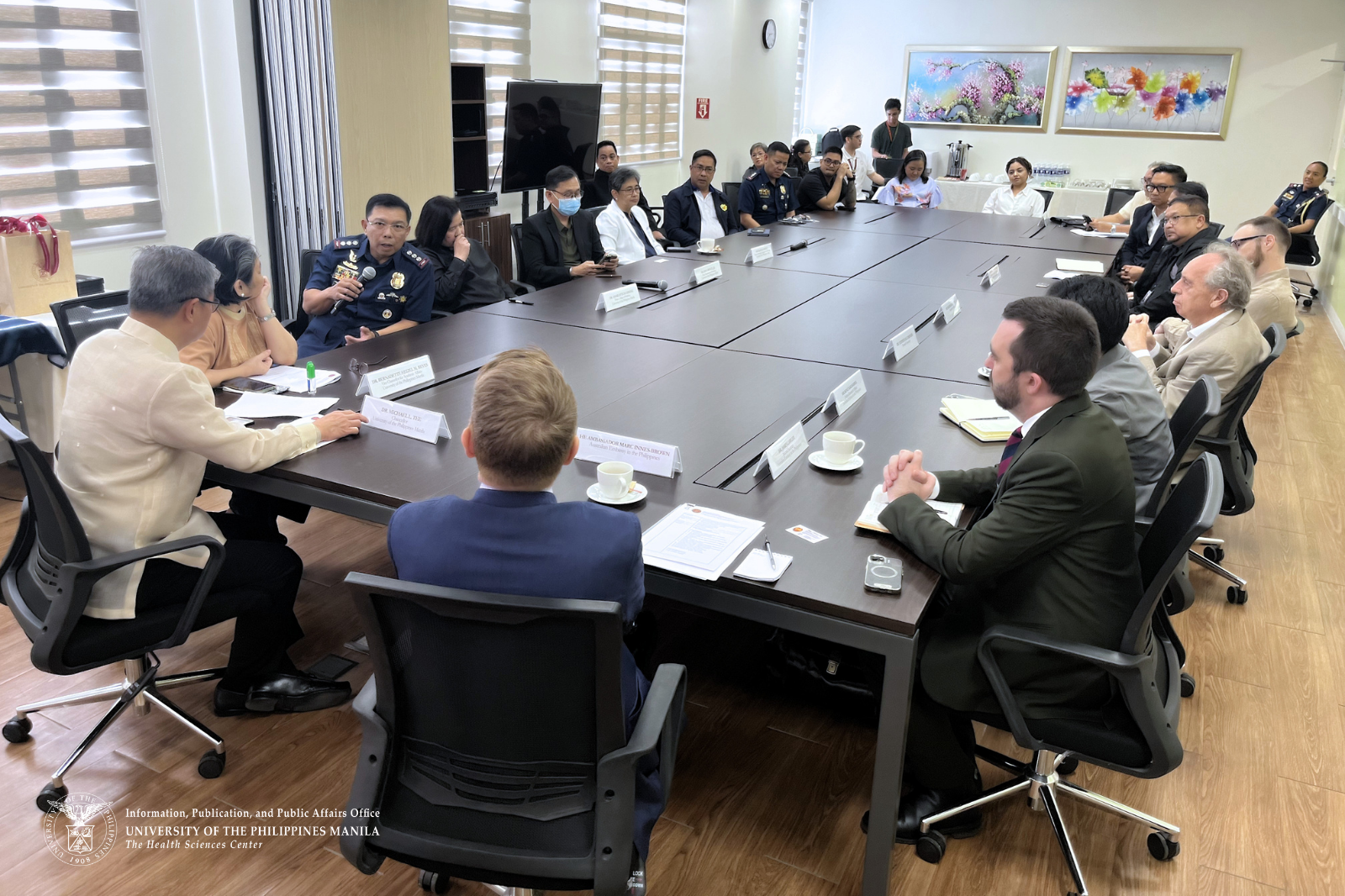 Also present in the meeting are Chancellor Bernadette Heizel Reyes, Chancellor Jose Tecson, NBI Assistant Director for Forensic and Scientific Research Service, Dr. Rommel Papa, Australian Embassy Second Secretary James Lawler, Australian Embassy Political Research Officer Bonz Magsambol, PNP Forensic Group Officers Herardo Hermosilla, Hector Sorra, and Marilyn Delos Santos, UP College of Medicine Dean Charlotte Chiong, Department of Pathology Chairperson, Dr. Jose Carnate; Forensic Pathologist, Dr. Raquel Fortun; and Master’s Degree in Forensic Medicine students Patricia Ann Franco, Princess Jeanne Gairanod, Paul Garreth Lucero, Al Anthony Chua, and Jericho Angelito Cordero. Monash University Forensic Medicine Professors, Dr. Stephen Cordner and Dr. Nicholas Dempsey also attended the meeting.