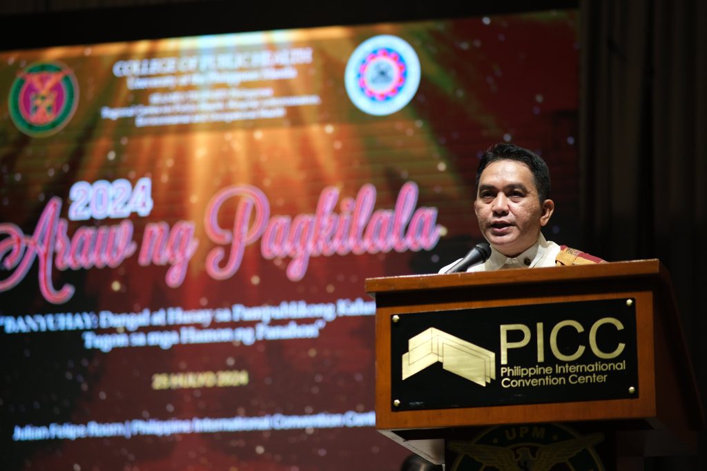 “Naway lagi ninyong isapuso ang mga aral at karanasan na inyong na eksperyensya dito sa kolehiyo at unibersidad nawa ay huwag ninyong kalimutan ang tunay na dangal at husay ay makikita sa patuloy na paglilingkod sa kapwa, sa ating bayan,” said Dr. Evalyn A. Roxas, College Secretary, UP College of Public Health and Chair, 2024 Recognition Ceremony Organizing Committee.