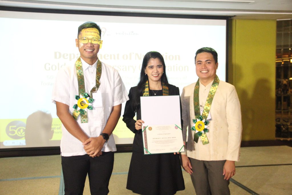 Certificates of Appreciation were presented to Dr. Anna Paulina S. Rodriguez, Dr. Chito C. Permejo, Dr. Caesar Eli F. Palaruan II, Dr. Nerissa Anne J. Tupaz-Estolano, and Dr. Olive DG. Quizon for their exceptional contributions as assistant professors, shaping generations of future leaders in nutrition. Researchers like Ms. Gabrielle Anne G. De Ocampo and Ms. Teresita A. Ylasco were also recognized for their commitment to advancing the department’s research goals. Together, these 15 honorees reflect the rich history and bright future of the Department of Nutrition, inspiring the next generation to carry the torch of excellence.